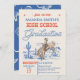 Segundo grau de Graduação Blue Red Rodeo Convite à formatura do segundo grau Azul e Vermelho ou Rodeio Vermelho com Temas de com paisagem desértica, cowboy e cavalo, estilo de corda e outro texto de fonte no estilo ocidental.
