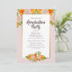 Um convite à festa de formatura floral cor-de-rosa-claro e laranja.