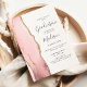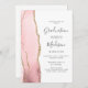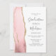 Este convite de festa de formatura da tendência 2025 apresenta uma imagem de aquarela de um geode agado em tons de rosa-pincel com realces falsos de brilho dourado. A palavra "Graduação" e o primeiro nome do formando aparecem em um roteiro elegante de cinza de carvão em fundo branco, juntamente com os detalhes do partido em fontes sans serif e itálico. A parte traseira da placa é branca estável.
