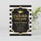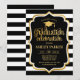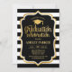 Convite de festa de formatura com faixas brancas pretas design simples elegante e elegante com fonte falsa de ouro brilhante e script. Perfeito para uma festa elegante.