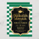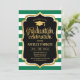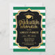 Convite festa de formatura para homens ou mulheres. Cartão de convite elegante em verde, preto e ouro. Design moderno simples com faixas, boné, dourado falso e letra de script de tipografia. Perfeito para uma comemoração de na moda.