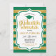 Convite à festa de formatura com faixas Douradas verdes. Design moderno e elegante com ouro brilhante falso e fonte de script. Perfeito para uma festa elegante.