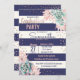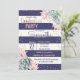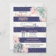 Moderno, chique, e feminino coram flores do rosa e do cacto do succulent da cerceta com as bolinhas cor-de-rosa impressas falso do ouro e tipografia em listras teste padrão do marfim do branco e de azuis marinhos, convites da festa de formatura. Este design clássico e sofisticado é perfeito para o formando elegante, à moda, e na moda. Personalize com sua própria mensagem na parte dianteira e uma inicial personalizada do monograma na parte traseira. Todo o design do impressão da foto.