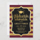Convite festa de formatura para homens ou mulheres. Cartão de convite elegante em burgundy maroon, preto e ouro. Design moderno simples com faixas, boné, dourado falso e letra de script de tipografia. Perfeito para uma comemoração de na moda.