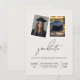 Celebre o grande momento do seu graduado com este convite de formatura moderno e elegante com duas fotos. Com duas molduras de fotos inclinadas - uma para o retrato do graduado e outra para seu chapéu - este design combina um layout minimalista com caligrafia elegante que diz "graduado". O fundo branco limpo e o texto nítido mantêm-no fresco e atemporal. Perfeito para festas de formatura do ensino médio ou faculdade. Personalize com seus detalhes e fotos facilmente usando as ferramentas intuitivas da Zazzle.