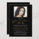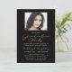 Convite para fotos de preto, ouro e festa de formatura branca elegante com uma fotografia, tipografia moderna de guião escrita à mão em ouro de champanhe contra um fundo preto editável que pode mudar para uma cor escolar, uma cor para coordenar com a sua fotografia ou uma cor favorita. ASSISTÊNCIA: para obter ajuda com a modificação ou personalização do design, alteração de cor, transferência do design para outro produto ou, se você quiser coordenar itens, entre em contato com o designer ANTES DE ENCOMENDAR através da guia MENSAGEM de bate-papo Zazzle ou envie um email para makeitaboutyoustore@gmail.com.