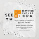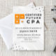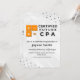 Celebre um marco notável com este convite de formatura de CPA moderno e profissional. Projetado com um layout branco limpo, texturas geométricas sutis e destaques laranja ousados inspirados em símbolos contábeis, este convite reflete perfeitamente a conquista de se tornar um Contador Público Certificado.