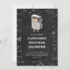 Adorável convite para a graduação pré-escolar com um tema matemático. A ilustração tem uma criança vestindo uma fantasia de calculadora sobre um fundo de quadro negro com equações matemáticas e fórmulas. Ilustrada e projetada por Patricia Alvarez.
