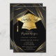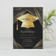 Convites Graduação em preto do Boné de Formando Dourado Ele