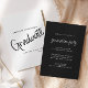 Um convite elegante para a graduação em preto e branco. Este convite de formatura apresenta um tema preto e branco com um roteiro elegante escrito à mão. Todo o texto no cartão pode ser personalizado para compartilhar todos os detalhes da graduação.