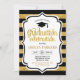 Convite à festa de formatura com faixas Douradas pretas design simples elegante e moderno com letra falsa de ouro brilhante e script. Perfeito para uma festa elegante.