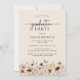 Convite de Graduação Floral Boho. Este convite de festa de graduação elegante e sofisticado apresenta belas flores silvestres pintadas à mão em aquarela, dispostas como um lindo buquê e uma caligrafia elegante. O verso inclui um belo padrão coordenado. Encontre produtos correspondentes na Coleção de Graduação Boho Wildflower.