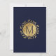 Padrão elegante, moderno e fino de ouro e marinho azul de tendências desenhado pelas mãos, convites para festas de formatura. Este design clássico e sofisticado é perfeito para o formando clássico, na moda e moderno. Personalize com sua própria mensagem na frente e um monograma personalizado no verso. Todas as impressão design.