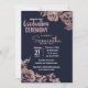 Flores de ouro rosa e tipografia elegantes, quicas e simples e modernas imprimem flores e tipografia em marinho azul moderno, convites para cerimônias de graduação. Este design clássico e sofisticado é perfeito para o formando clássico, na moda e moderno. Personalize com sua própria mensagem na frente e um monograma personalizado inicial no verso. Todas as impressão de fotos.