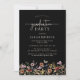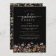 Convite para Graduação Floral Negra. Este convite para na moda e festa de formatura elegante apresenta lindas flores silvestres de cor d'água pintadas manualmente, organizadas como um buquê adorável e um roteiro elegante de caligrafia. As costas incluem um belo padrão de coordenação. Encontre produtos correspondentes na Coleção de Graduação Boho Wildflower.