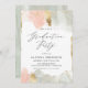 Convite elegante e moderno para festas de formatura, com detalhes de seu partido, acompanhado de formas de aquarela verde e cor-de-rosa suave e poeirenta e sotaques geométricos de folha de ouro falsos. Os convites exclusivos de festa de formatura revertem para um plano de fundo de cor verde-d'água sólido. Perfeito para festas segundos graus e formandos!