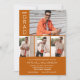 Adicione as suas quatro fotografias favoritas a estes convites para festas de formatura que contêm os seus detalhes em letras brancas cônicas num fundo laranja queimado. Use as ferramentas de edição para alterar a cor do plano de fundo. Mais designs e cores feitas em nossa loja.