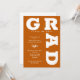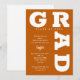 FORMANDO em curvas de letras brancas em negrito ao redor das bordas desses convites de festa de formatura laranja queimados. VEJA A COLEÇÃO INTEIRA de cores pré-feitas, placas de papel, guardanapos, e muito mais em nossa loja.