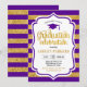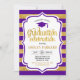 Convite à festa de formatura com faixas Douradas roxas. Design moderno e elegante com ouro brilhante falso e fonte de script. Perfeito para uma festa elegante.