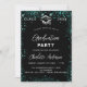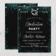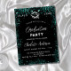 Um convite moderno e elegante para a festa de formatura. Um fundo preto decorado com brilho verde, faíscas em tons, faíscas. Personalize e adicione um nome, ano e detalhes.
