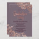 O país elegante, moderno e falso na moda o ouro cor-de-rosa impresso florais em um fundo malva roxo e em uma escova escrita à mão script a tipografia da pia batismal, convites da festa de formatura. Este design clássico e sofisticado é perfeito para o formando elegante, à moda, e na moda. Personalize com sua própria mensagem na parte dianteira e uma inicial personalizada do monograma na parte traseira. Todo o design do impressão da foto.