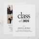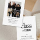 Anuncie sua formatura com um estilo atemporal usando este convite de formatura branco minimalista. Com uma diagramação limpa, tipografia serifada moderna e um design de grade de fotos para mostrar seus melhores momentos de formatura. Este cartão de dupla face inclui um anúncio formal "Turma de 2026" no verso, juntamente com detalhes acadêmicos personalizados. Perfeito para graduados do ensino médio, faculdade ou universidade que preferem uma estética clássica e elegante.