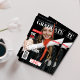 O Convite para Graduação de Estilo da Revista apresenta um fundo fotográfico, criando um visual profissional e polido. Uma pequena foto do formando é colocada na parte inferior, adicionando um toque pessoal. O texto é exibido em vermelho e branco impressionantes, criando um contraste ousado que melhora o design moderno e elegante, mantendo um sentimento elegante e sofisticado.perfeito para anunciar uma celebração memorável de graduação.
