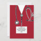 Convite à festa de formatura de enfermeira ou anúncio de formatura na escola de enfermagem modelo com esfregões de hospital vermelho e suprimentos de saúde.