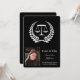 Folha de louros preta e branca com escalas de justiça numa silhueta. Fundo preto. Personalize este item de graduação com a faculdade de direito, a profissão jurídica, como advogado, advogado, assistente jurídico, universidade ou universidade, e o seu nome e título, juntamente com a cerimônia de graduação ou informações de festas de casa aberta.
