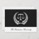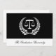 Folha de louros preta e branca com escalas de justiça numa silhueta. Fundo preto. Personalize este item de graduação com a faculdade de direito, a profissão jurídica, como advogado, advogado, assistente jurídico, universidade ou universidade, e o seu nome e título, juntamente com a cerimônia de graduação ou informações de festas de casa aberta.