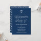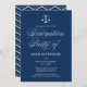 Marinho azul e branco convite para festas de formatura da escola de direito apresentando um roteiro elegante com um padrão de chevron. Este convite está disponível em outras cores.