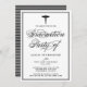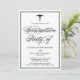 Convite personalizável para a festa de formatura da faculdade de medicina para celebrar o formando! Convite para festas de formatura em preto e branco com caduceus caduceus, script elegante com padrão pinstripes. Este convite está disponível em outras cores.