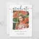 Design a sua única placa plana personalizada de anúncio de Graduação personalizada exclusiva de Ricaso - projetada com um texto de formando de tipografia de rolagem com um padrão moderno de linha escrivado, cor de laranja e branco, riscado - ALTERE A FOTO DE AMOSTRA PARA A SUA PRÓPRIA