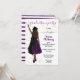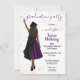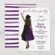 Convites de graduação moderna para o novo formando da sua família. Apresenta a parte de trás de uma feliz e escura garota afro-americana com vestido preto de graduação jogado no ombro, vestido roxo de ameixa, boné, com um confete de ouro falso com um roxo moderno e branco riscado para trás. Mude o cabelo para o ajustado das suas necessidades, por favor peça-me a sua cor de cabelo em tkatz@me.com. Excelente para segundo grau, enfermeiro, doutor, faculdade, faculdade de direito, formando etc.