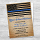 Concursos de Graduação da Polícia de Linha Azul fina ou Convites de festas de Reforma Policial. Celebre anos de serviço dedicado, ou comemore seu novo formando da academia de polícia, e convide amigos e família para a sua polícia com os convites para a graduação da Academia de Polícia de Linha Azul Thin - Convite para aposentadoria e convites para aposentadoria da Polícia - design de bandeira americana em cores da Polícia, design angustiada. Este convite para a formatura do policial também é perfeito para convites de aposentadoria da polícia, mudança de local na personalização. Veja nossa coleção para combinar presentes de aposentadoria, presentes de graduação policial, favoritos para festas e suprimentos. COPYRIGHT © 2021 Judy Burrows, Black Dog Art - Todos Os Direitos Reservados. Formatação Policial - Convite à Polícia de Linha Azul Fino