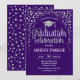 Convite festa de formatura para homens ou mulheres. Cartão de convite elegante em roxo e prata. Design moderno simples com faux glitter confetti, uma fonte de script de boné e tipografia. Perfeito para uma comemoração de na moda.