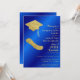 Criar convites únicos de graduação para a classe de formando 2025, concebidos em cores azuis e douradas reais e decorados com um chapéu de formando e ilustrações de diploma. Os modelos facilitam a personalização dos convites com o nome do formando, ano, nome da escola, data, local e dados de RSVP. Além disso, você pode alterar a dentro de outro texto a ferramenta design se quiser personalizá-los.
