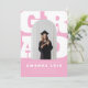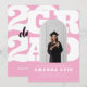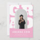 Celebre sua grande conquista com este convite de formatura ousado e divertido, apresentando um fundo de texto "GRAD" inspirado no estilo retrô em letras grandes e um recorte de foto em arco moderno. A paleta de cores rosa e branco dá um toque divertido e feminino - perfeito para graduados do ensino médio ou universitário. Personalize com o nome dela, data de formatura e detalhes do evento. Uma maneira de destacar o convite para amigos e familiares para a celebração!