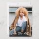 Adicione a sua foto favorita à frente destes cartões salve a data de cerimônia de festa de formatura ou de graduação com seus detalhes no verso em letras brancas. ALTERE a cor no verso para corresponder à sua foto ou cor escolar. Mais designs na nossa loja.