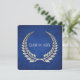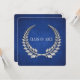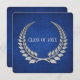 Símbolo de riso prateado para festa de formatura sobre fundo texturizado azul. O texto pode ser editado para qualquer ano escolar.