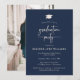 Convite Simples De Graduação De marinho. Nossos Convites para Graduação de Script Simples Elegantes misturam sofisticação com comemoração. Cada convite ostenta um motif clássico de boné de formatura e um roteiro de caligrafia manuscrito gracioso. Disponíveis em várias cores, incluindo preto e branco, azul marinho, verde escuro, vermelho escuro, roxo e ouro, esses convites atendem a cada estilo de formando. Aumente seu anúncio com fotos personalizadas de graduação e complemente seu evento com itens coordenadores, como anúncios, etiquetas de endereço, envelopes, sinais de boas-vindas, banners, placas de jardim e artigos de mesa essenciais como placas de papel, guardanapos, xícaras e refrigeradores. Celebre este marco em estilo com a nossa coleção de tendências.