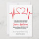 O coração vermelho bateu no impressão do ECG, perfeito para médicos, enfermeiros e qualquer um na indústria de saúde. Personalize adicionando seu nome, negócios ou prática médica, ou escolhendo apenas sua cor de fundo. Excelente para cursos de enfermagem ou graduações em medicina, ou você pode trocar o texto por um convite para uma sala de medicina aberta ou grande abertura, ou o que você quiser! Convite Médico para Enfermagem com Enfermagem do Coração Vermelho
