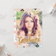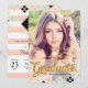 Classe de 2014. Convite elegante da graduação que caracteriza sua melhor foto superior. Quatrefoil floral geométrico elegante com a pia batismal falsificada chique do roteiro do brilho do ouro e os detalhes (não é feita do brilho real, não faísca ou brilho). Parte traseira à moda com listras cor-de-rosa e tipografia moderna. O *** NOTA POR FAVOR que se você muda a pia batismal ou o tamanho da pia batismal, ele pode alterar-se como seu convite imprime. Imprimirá a maneira que você a vê em seu monitor. Eu não verei seu cartão uma vez que você o pede, e Zazzle não editará qualquer coisa (erros tipográficos, alinhamento, etc.). Foto indicada somente como o modelo.