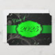 Convite à graduação verde e preto com verde claro e escuro e uma fita verde passando mostrando o ano de graduação. A parte traseira do cartão é preta com fonte verde-claro para que as pessoas preencham os anúncios de graduação.