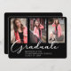 Convite a fotos da festa de formatura virtual negra para estes dias de quarentena e distanciamento social. Este cartão foi projetado com uma fonte de script elegante e 3 fotos na frente. O verso é preto com texto branco, mas completamente personalizável com a ferramenta design de Zazzle.
