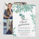 Classe de 2021, prepare-se para um novo estilo de festa de formatura, graduação virtual! Envie seus convites para a sua festa de formando virtual com esta cor de água floral verde, azul pintada, azul de folhas de eucalipto, com uma ilustração de boné de formatura, computador, mouse e teclado. Adicione 3 da sua foto favorita no verso e envie seu link para o seu convite virtual! Perfeito para festa virtual, chá de longa distância e muito mais!