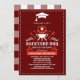 Linda invitación a la fiesta "Backyard BBQ" incluye un motivo de cierre de graduación, un elegante texto personalizado con fuentes rústicas y modernas, Se puede personalizar el fondo Rojo oscuro y el trenzado de manteles de gingham en la parte posterior de la tarjeta. Perfecto para una fiesta de graduación al aire libre.