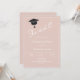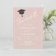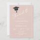 A modern and stylish blush pink neutral invitation for a graduation party. Text: She did it! Decorated with a black graduation cap. Personalize and add a name and the details.