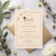 A modern and stylish champagne colored invitation for a graduation party. Text: She did it! with a heart. Decorated with a black graduation cap. Personalize and add a name and the details.