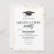 Elegant graduation party invitation with a clean white background, soft gold accents, and a classic graduation cap design. Fully editable template to personalize the name, date, time, location, class year, and RSVP details. Perfect for high school or college graduation celebrations.